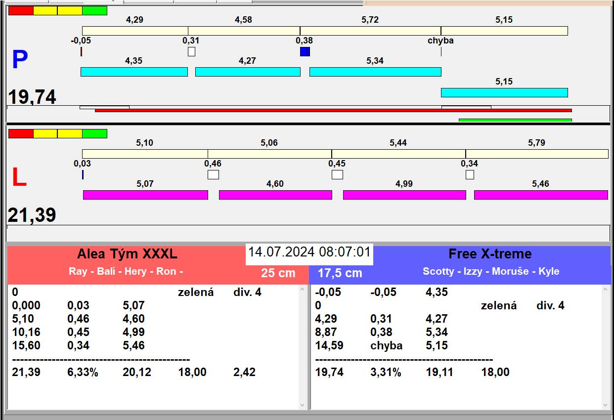 | 45 | 4 | 1 | # 4 | Alea Tým XXXL | 3 - 1 | Free X-treme | # 5 | 07:56 08:04 08:05 08:05 08:06 08:07 08:07 08:08 08:09 | |