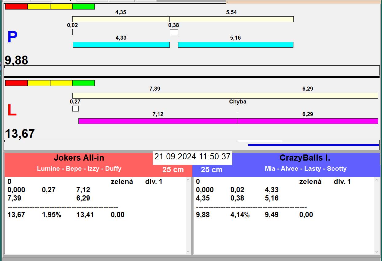 | 8 | 3 | 2 | Lavina Delta | 0 - 1 | Alea Noční můra | 10:54 10:55 10:55 10:56 10:57 10:57 10:58 10:58 10:59 11:00 | |||