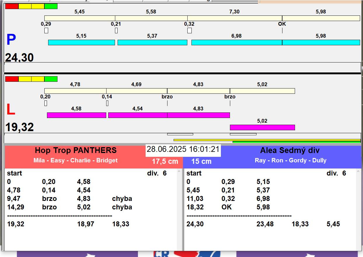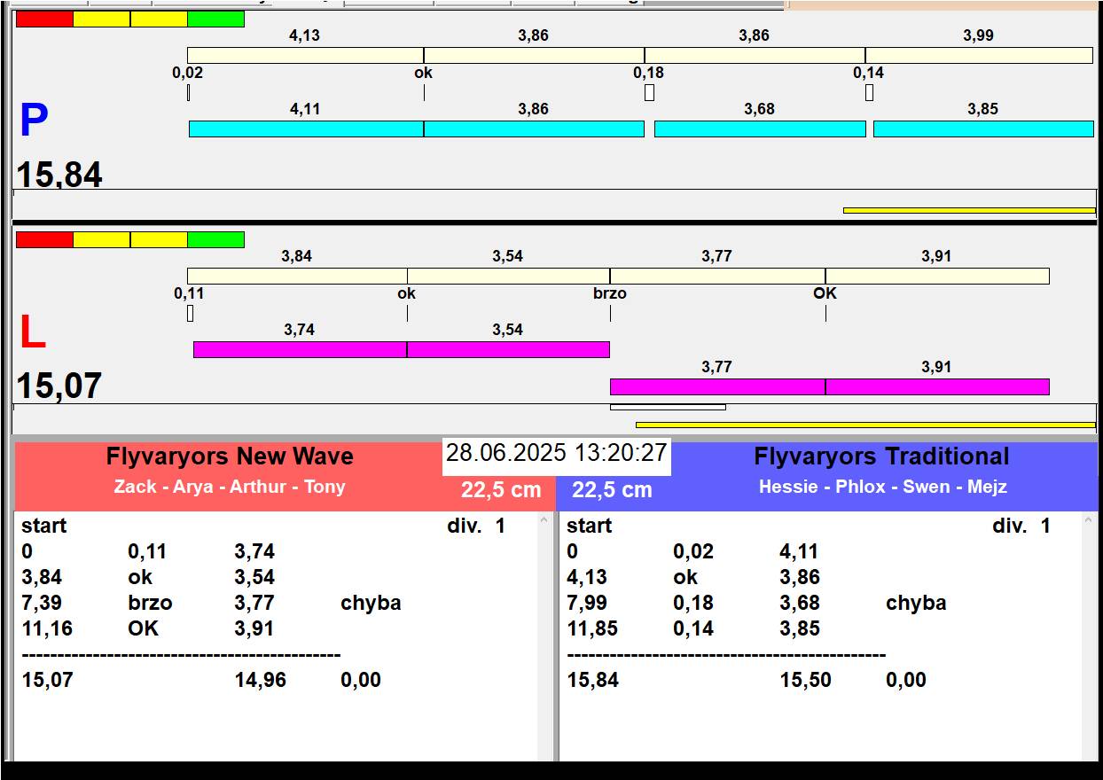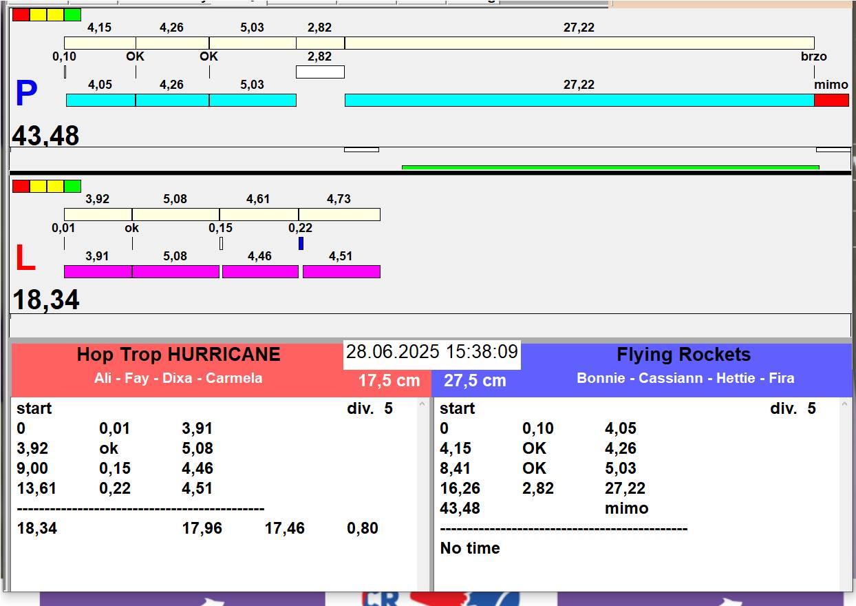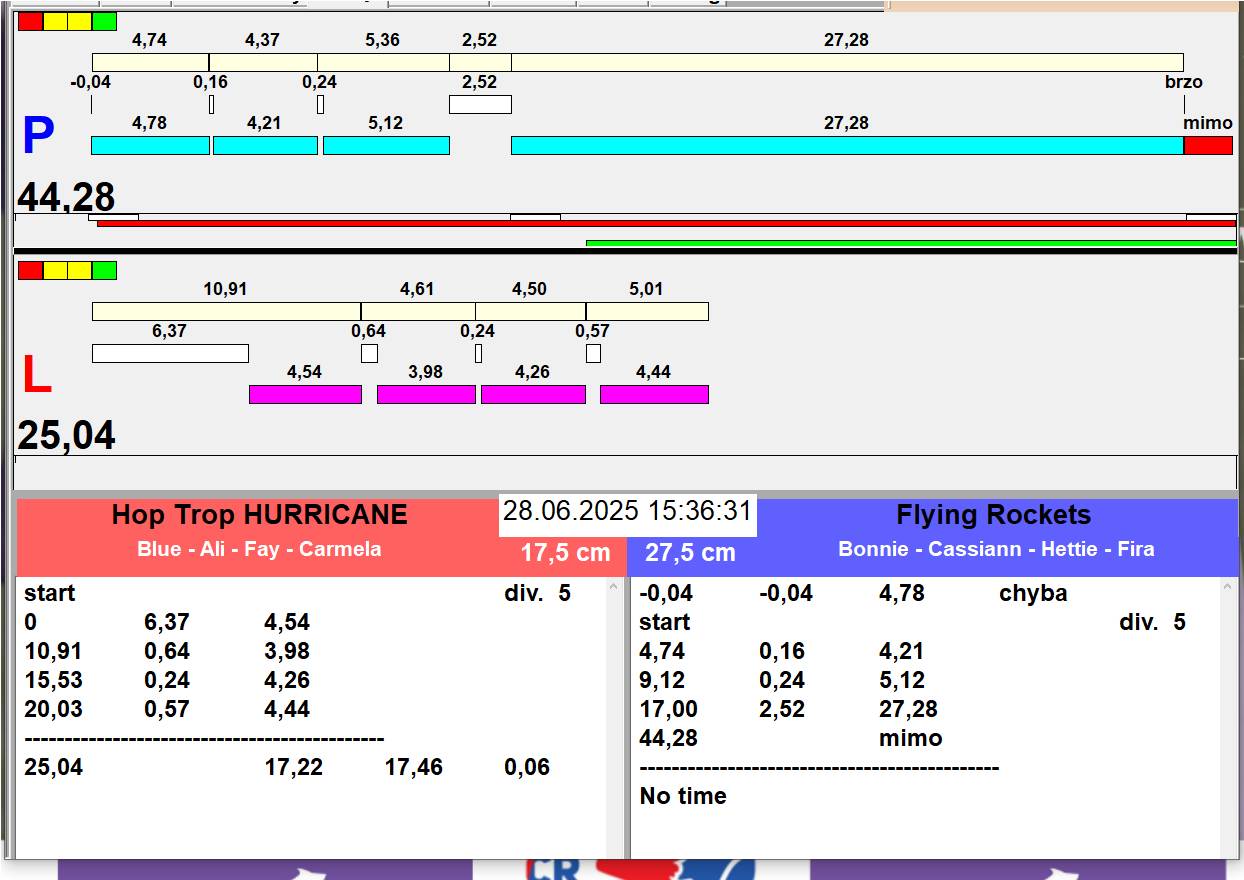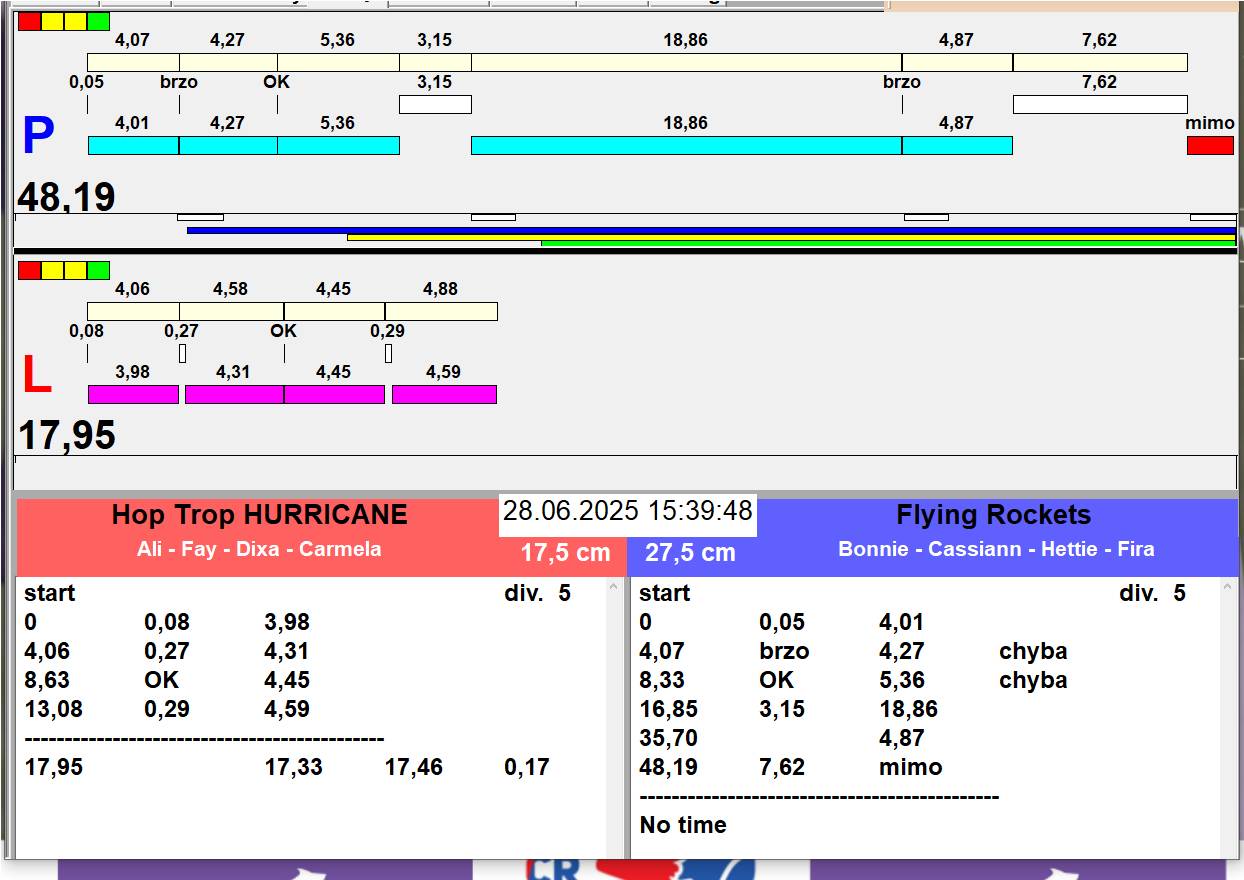 | 26 | 5 | 6 | Hop Trop HURRICANE | 1 - 1 | Alea Jižní vítr | 13:05 13:06 13:08 13:11 | |||