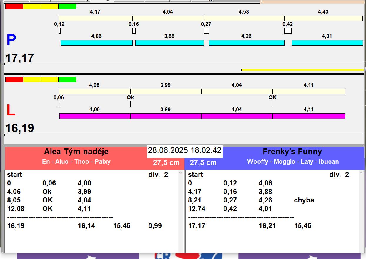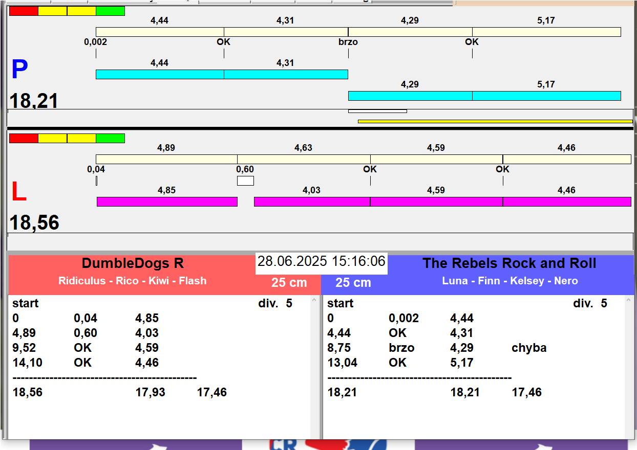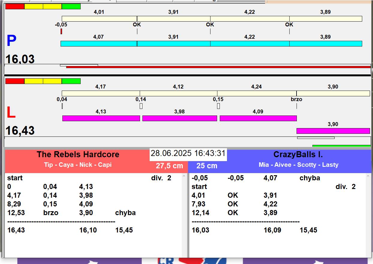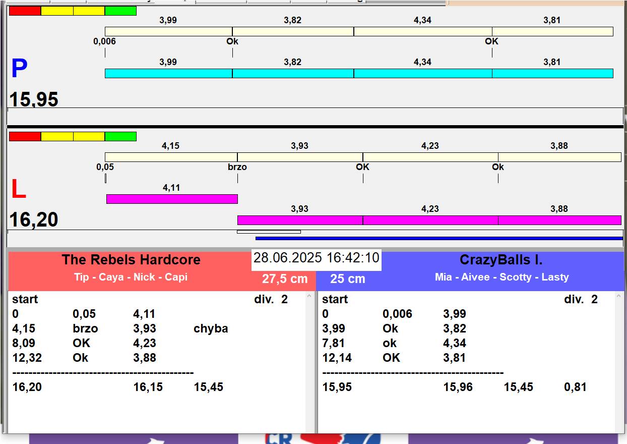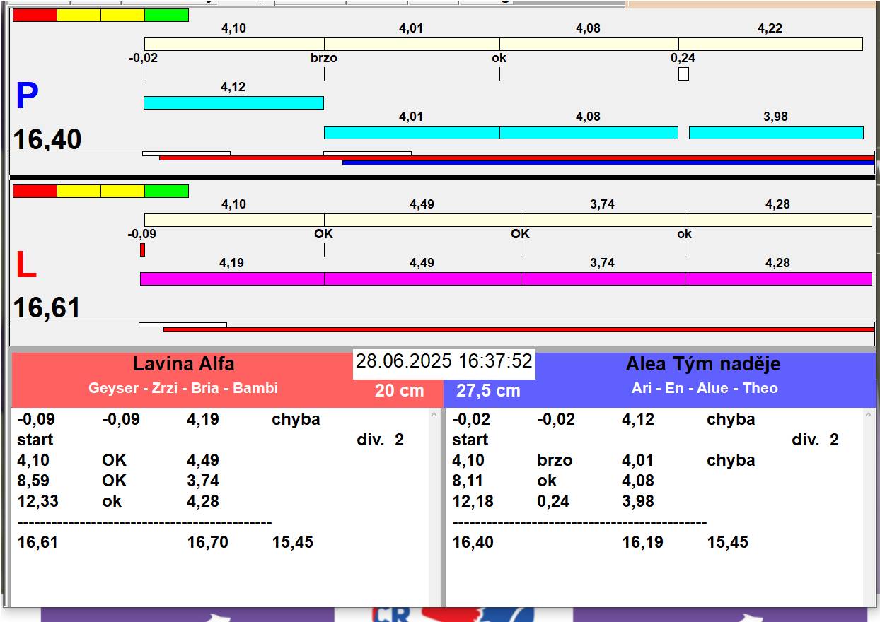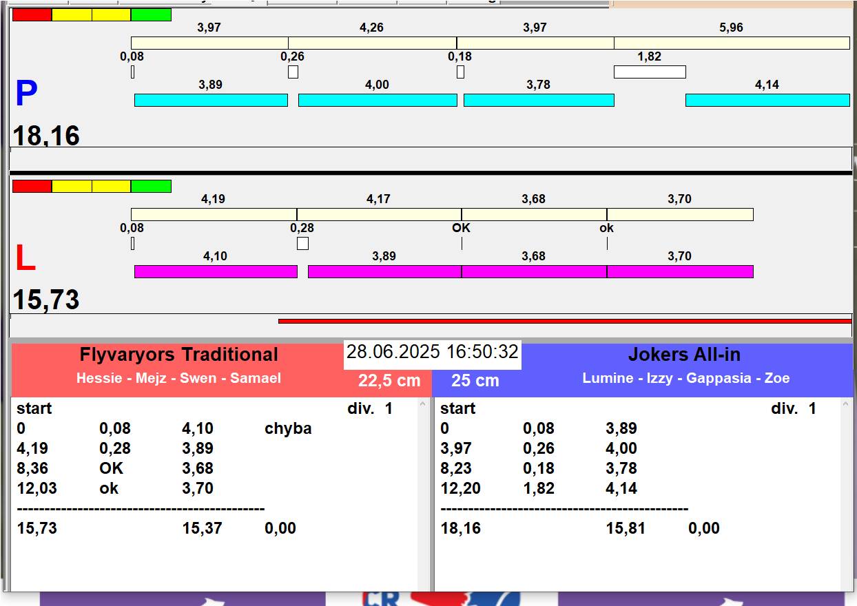 | 26 | 5 | 6 | Hop Trop HURRICANE | 1 - 1 | Alea Jižní vítr | 13:05 13:06 13:08 13:11 | |||