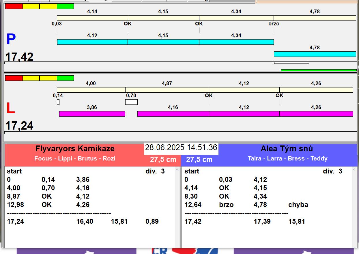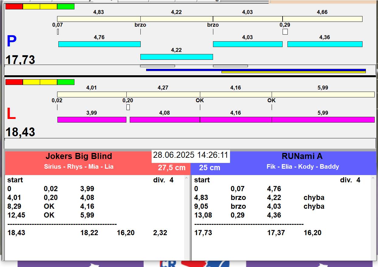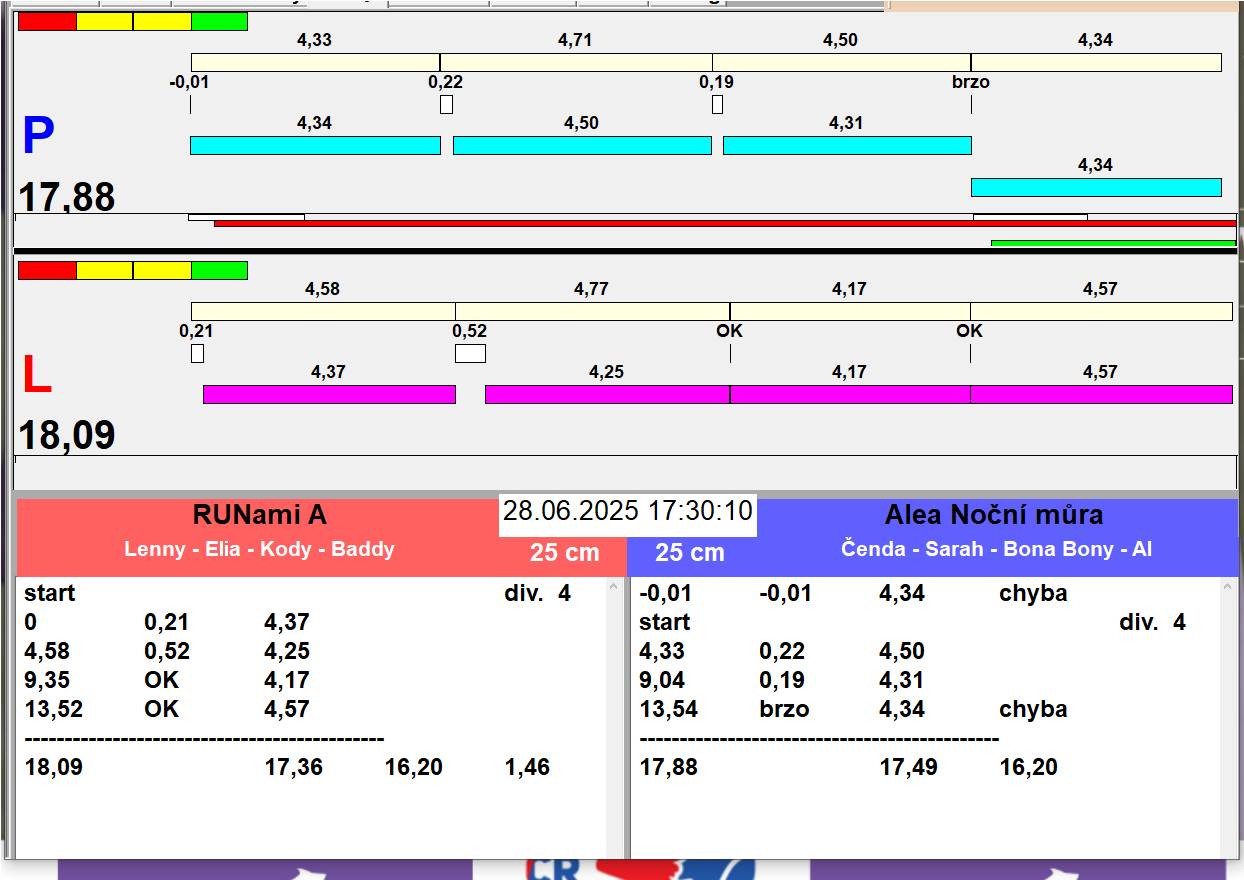 | 54 | 4 | 9 | RUNami A | 2 - 0 | Alea Noční můra | 17:30 17:31 17:32 | |||