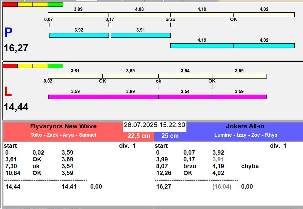 | 23 | 3 | 5 | Alea Jižní vítr | 2 - 0 | The Rebels Rock and Roll | 16:07 16:08 16:10 16:12 | |||