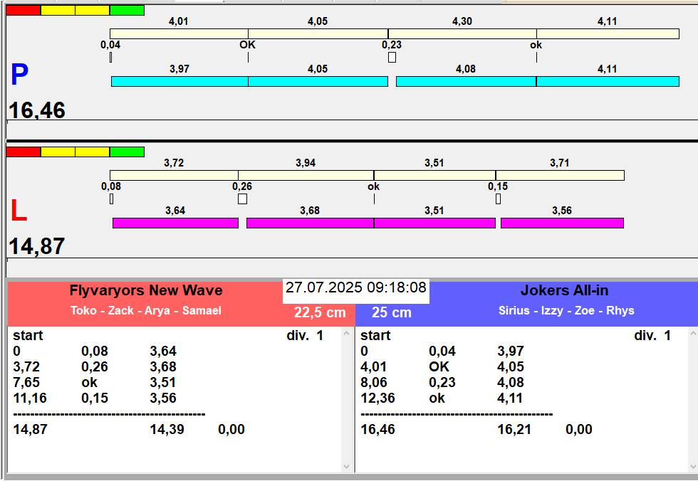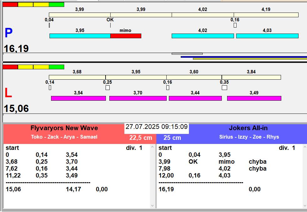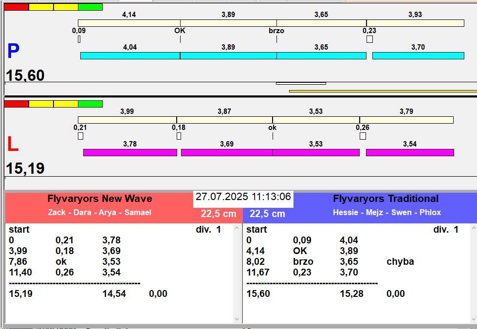| 39 | 2 | 4 | L1 | Flyvaryors Kamikaze | 1 - 3 | Hop Trop PRAGUE | L2 | 09:50 09:52 09:53 09:55 | |