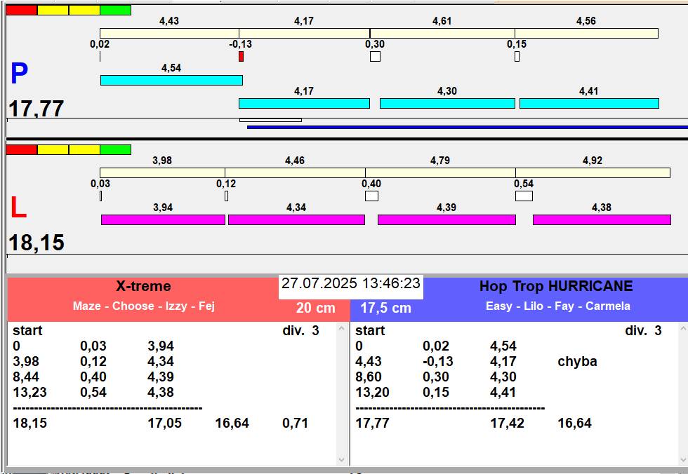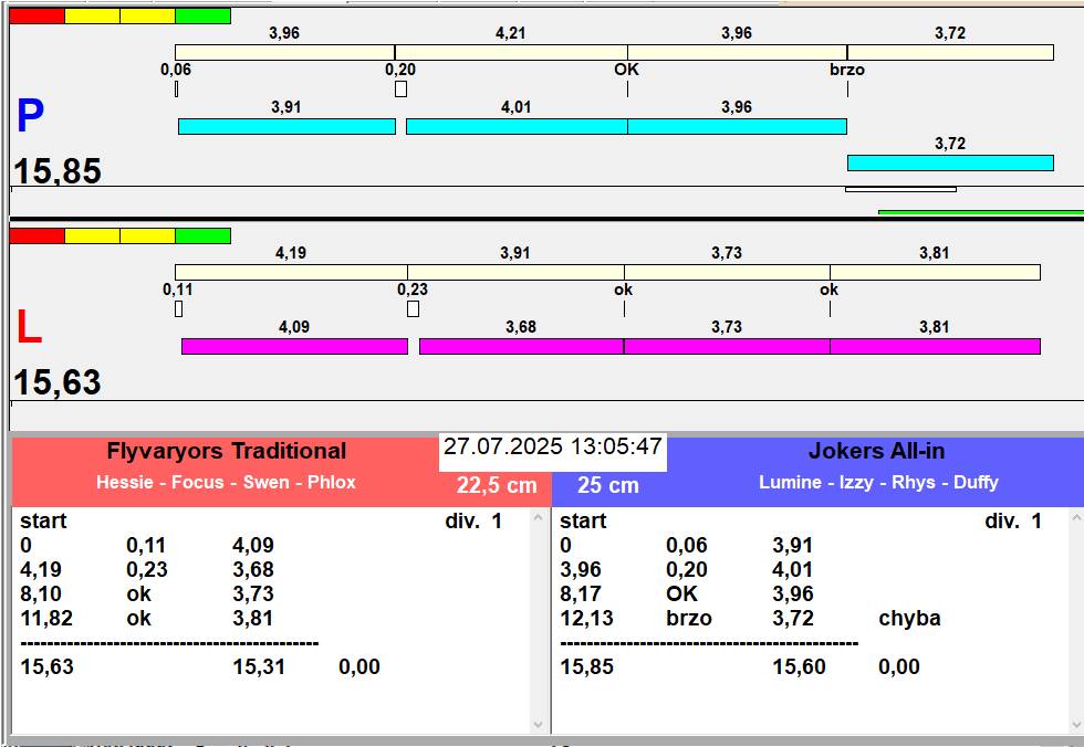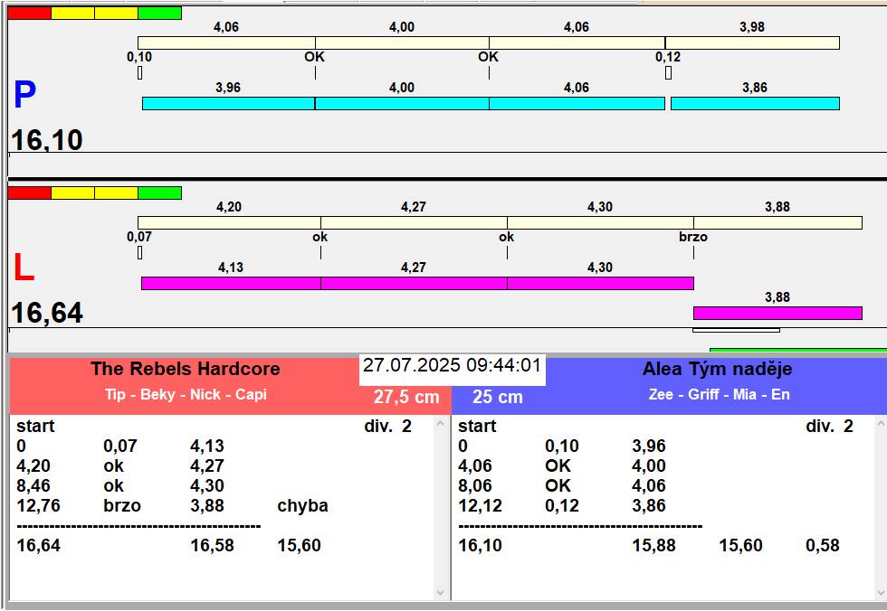 | 43 | 3 | 4 | L1 | The Rebels Rock and Roll | 3 - 2 | Alea Jižní vítr | L2 | 10:36 10:38 10:39 10:40 10:42 | |