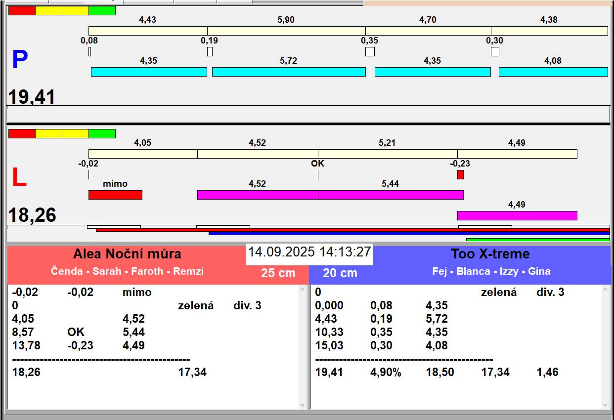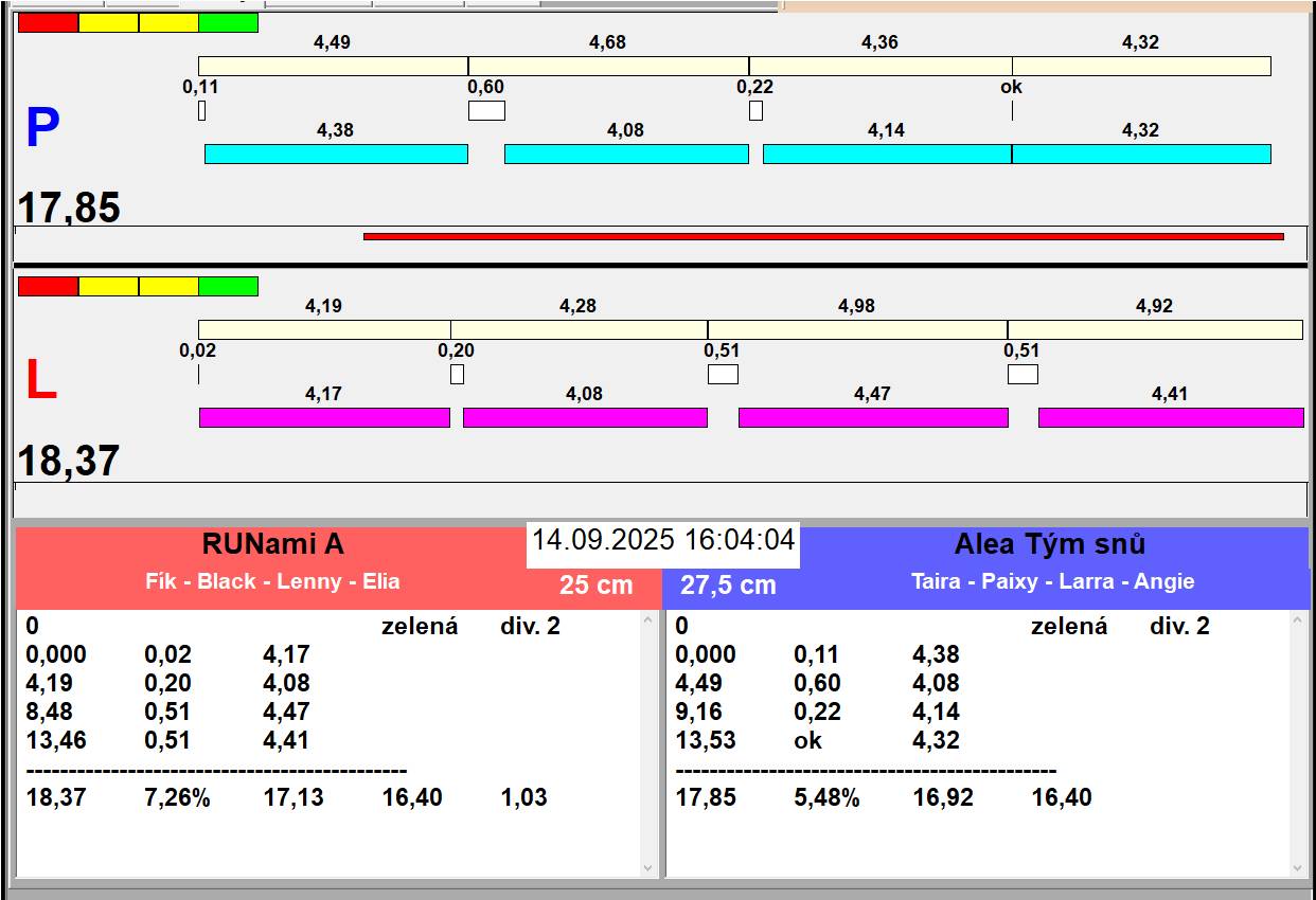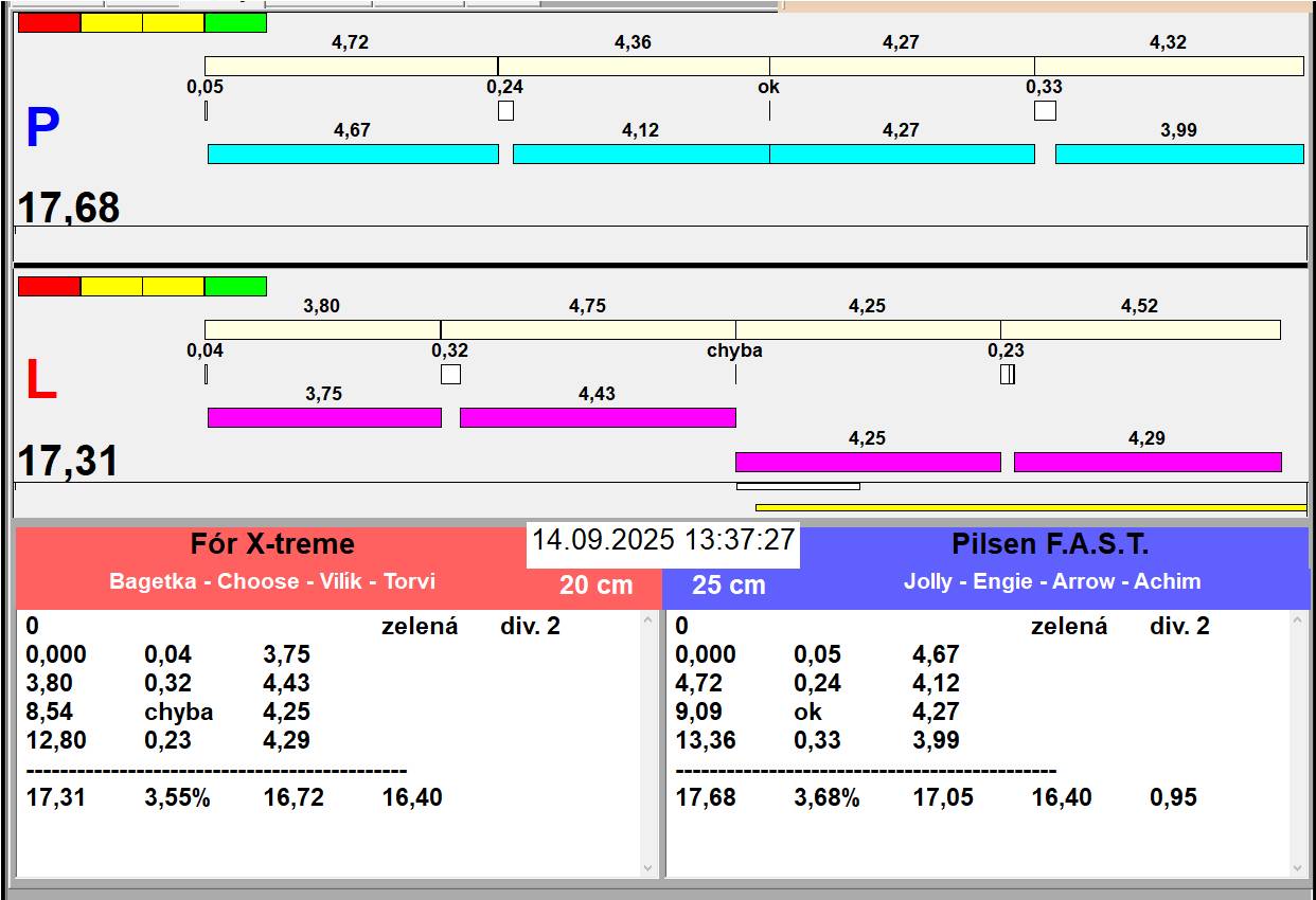 | Zaciname odpoledni behy v 13:20. Oběd plus přesun drah, pauza 45 minut | |||||||||