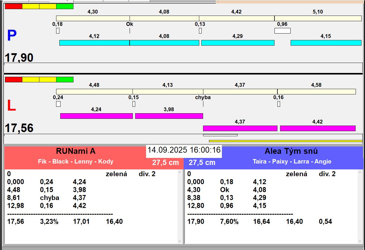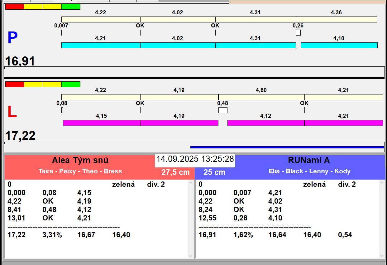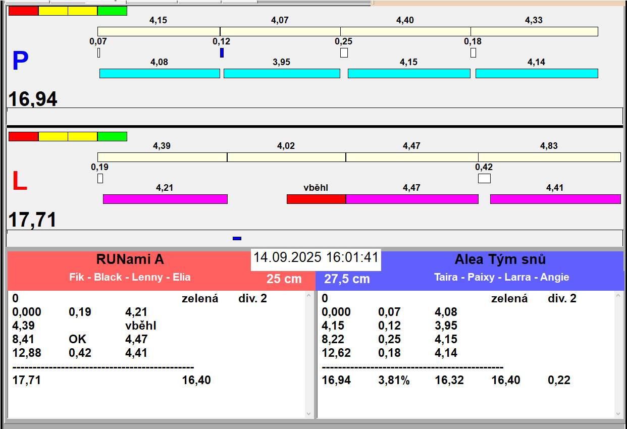 | Zaciname odpoledni behy v 13:20. Oběd plus přesun drah, pauza 45 minut | |||||||||